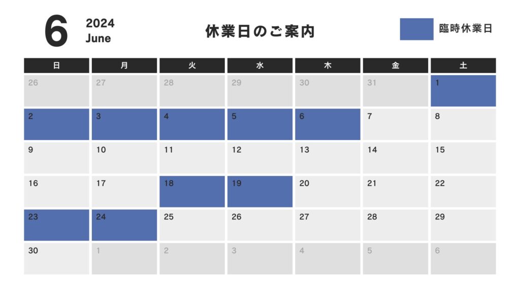 6月臨時休業日のおしらせ
